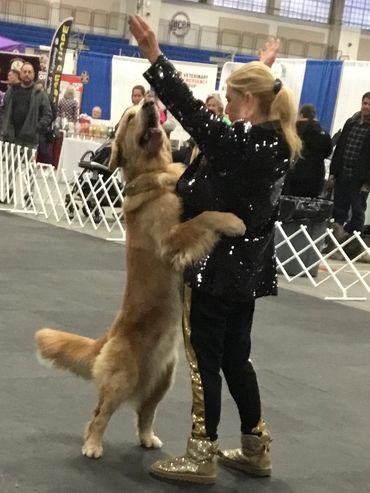 Diana presents a high energy, exciting act, featuring Freestyle dancing and an entertaining trick show. She brings out the best in her dogs showcasing their genuine bond and love for Gokden Retrievers. Diana’s passion for her dogs is displayed as they perform as a team throughout their performances. Diana believes that with time, patience and positive training anyone can create the special bond with their dog. As a dog lover and trainer for many canine sports, she travels around the Northeast entertaining and wowing crowds with her amazing Goldens.